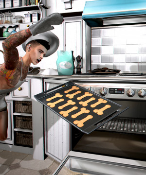 • Gachas: Apron, mitts, bakers hat, rolling pin, bag of flour, baking tray, gingerbread men.