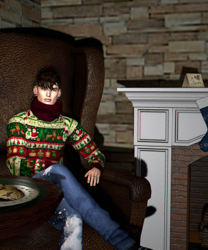 - Contains fireplace, chair, wreath, stockings in three colours, table, cookie plate, Christmas card, candlelight and a glass of milk.